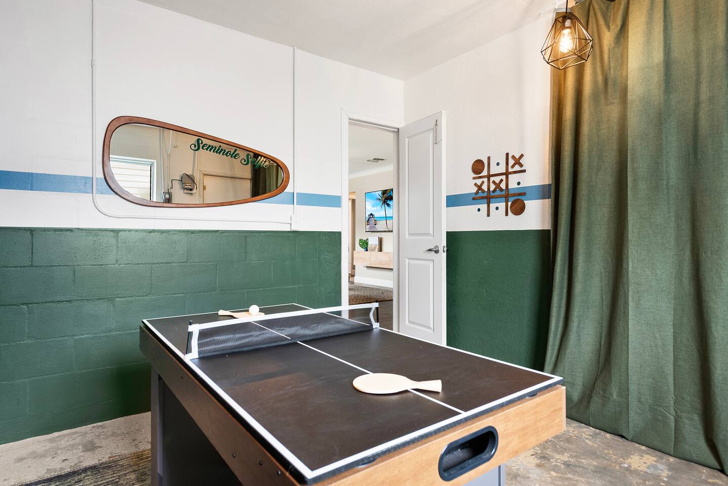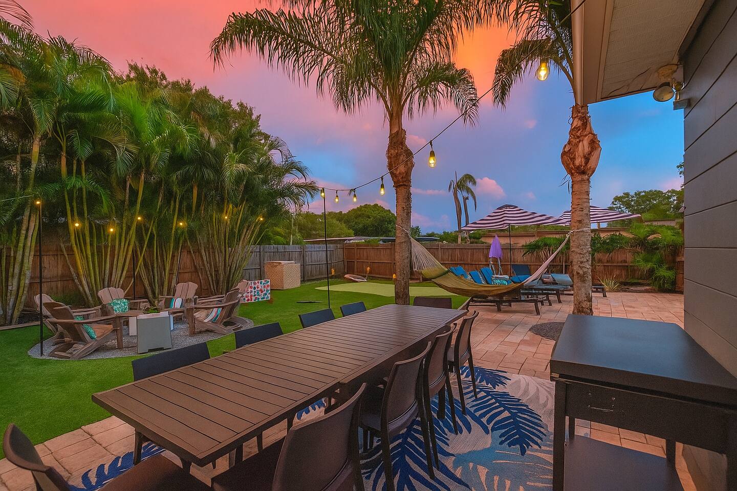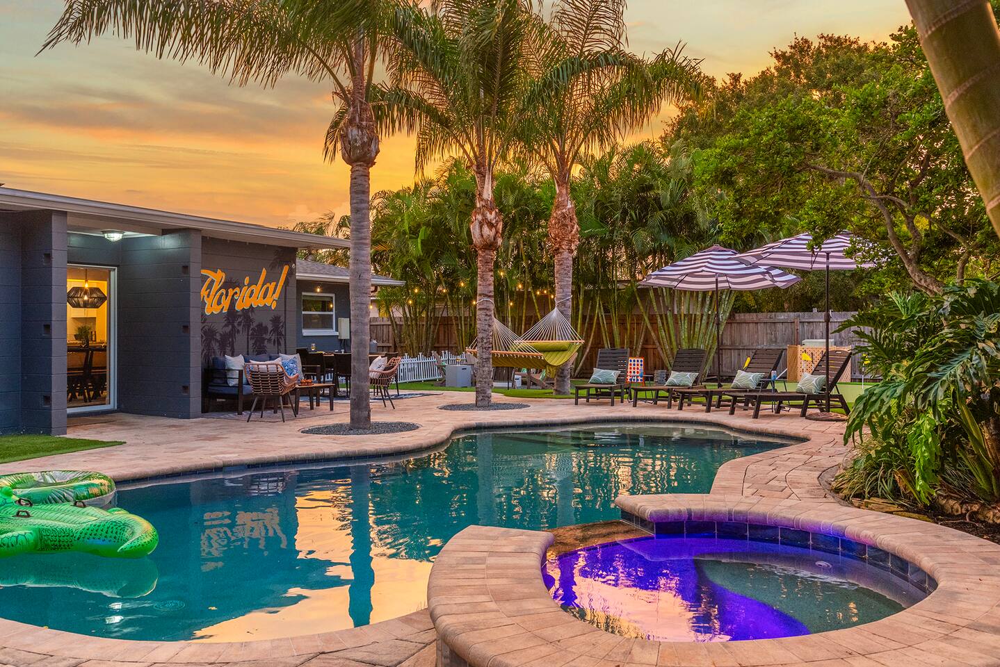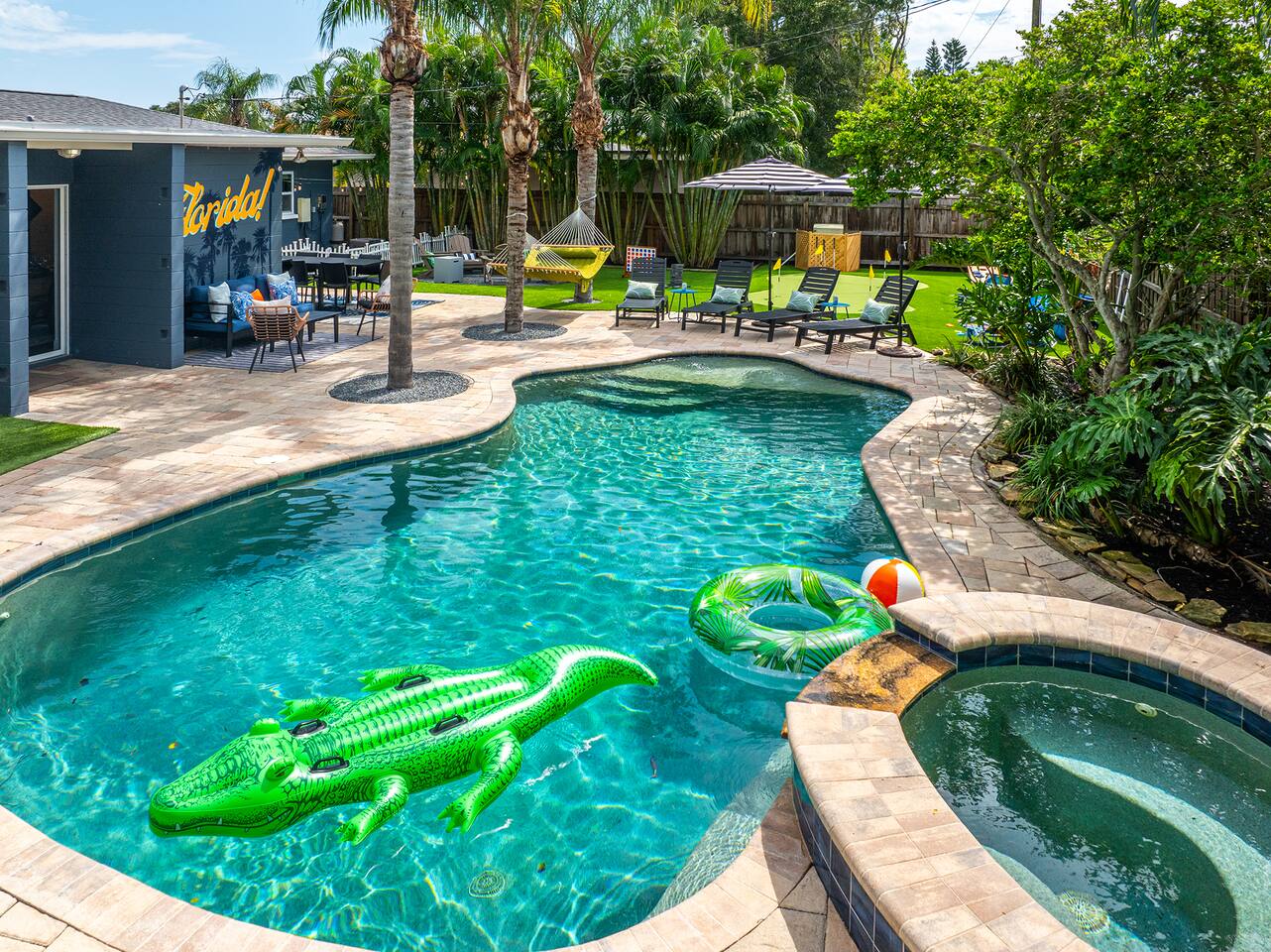 🏡 Welcome to The Seminole Escape — Your Luxury Family Retreat Awaits! Get ready for a relaxing, fun-filled getaway at this stylish, family-friendly home just 7 minutes from the beach! Enjoy your own private oasis packed with entertainment, comfort, and convenience. 🌟 Top Amenities ✔️ ⛳ 4-Hole Putt Putt Course ✔️ 💦 Saltwater Pool (heating available as an add-on) ✔️ 🧖♀️ Spa / Jacuzzi ✔️ 🔥 Fire Pit ✔️ 🪵 Hammock for lounging ✔️ 🎮 Game Room with TV ✔️ 👶🏻 Pack ’n Play & High Chair ✔️ 🎲 Board Games & Books ✔️ 🚗 Free Parking (up to 4 cars) ✔️ 🏸 Outdoor Games ✔️ 🏖️ Beach Gear Provided (chairs, umbrellas, games, cooler) 📍 Conveniently Close To • 🏝️ Beach – 7 min • ⚾ Tropicana Field / Ray’s Stadium – 25 min • ✈️ Tampa Airport – 30 min • 🌆 Downtown St. Petersburg – 25 min 🏠 Home Highlights • 🛏️ 4 Bedrooms • 🚿 2 Bathrooms • 🌴 Private Backyard Oasis with Pool, Spa & Fire Pit • 🍳 Fully Equipped Kitchen (with essential appliances) • 📺 Living Room w/ 65" Flat-Screen TV • 💻 Free Wi-Fi • 🧺 Washer & Dryer 🛌 Bedroom Configuration Bedroom 1: King Bed Bedroom 2: King Bed Bedroom 3: Full Bunk Bedroom 4: Two Twin Bunks